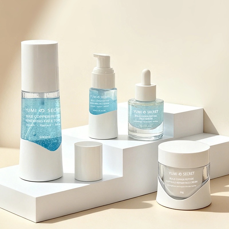 Il nostro team di scienziati professionisti con dottorato di ricerca ha sviluppato la Blue Copper Peptide Series con tecnologia a microcapsule: una linea di prodotti anti-età delicata ma altamente efficace, specificamente studiata per pelli sensibili e soggette ad arrossamenti, e prodotta nella nostra camera bianca certificata GMPC. In qualità di produttori di prodotti per la cura della pelle a marchio privato con oltre 20 anni di esperienza, offriamo un supporto completo al vostro marchio in ogni fase, dallo sviluppo iniziale della formulazione e dall'integrazione tecnica approfondita alla progettazione di packaging personalizzato e alla produzione finale.