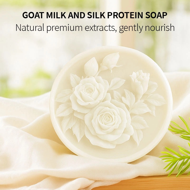 Il nostro sapone al latte di capra e proteine della seta è un trattamento completo per la cura della pelle. Arricchito con latte di capra e proteine della seta, deterge in profondità, illumina, idrata e combatte l'acne. Delicato su tutti i tipi di pelle, è adatto sia per il viso che per il corpo, con un elegante design a forma di rosa intagliata in 3D.