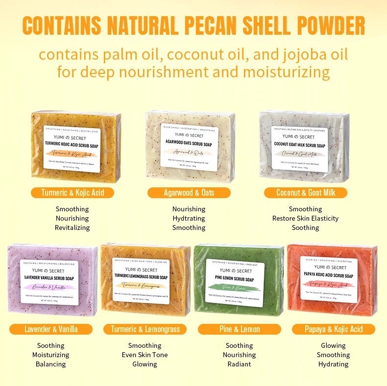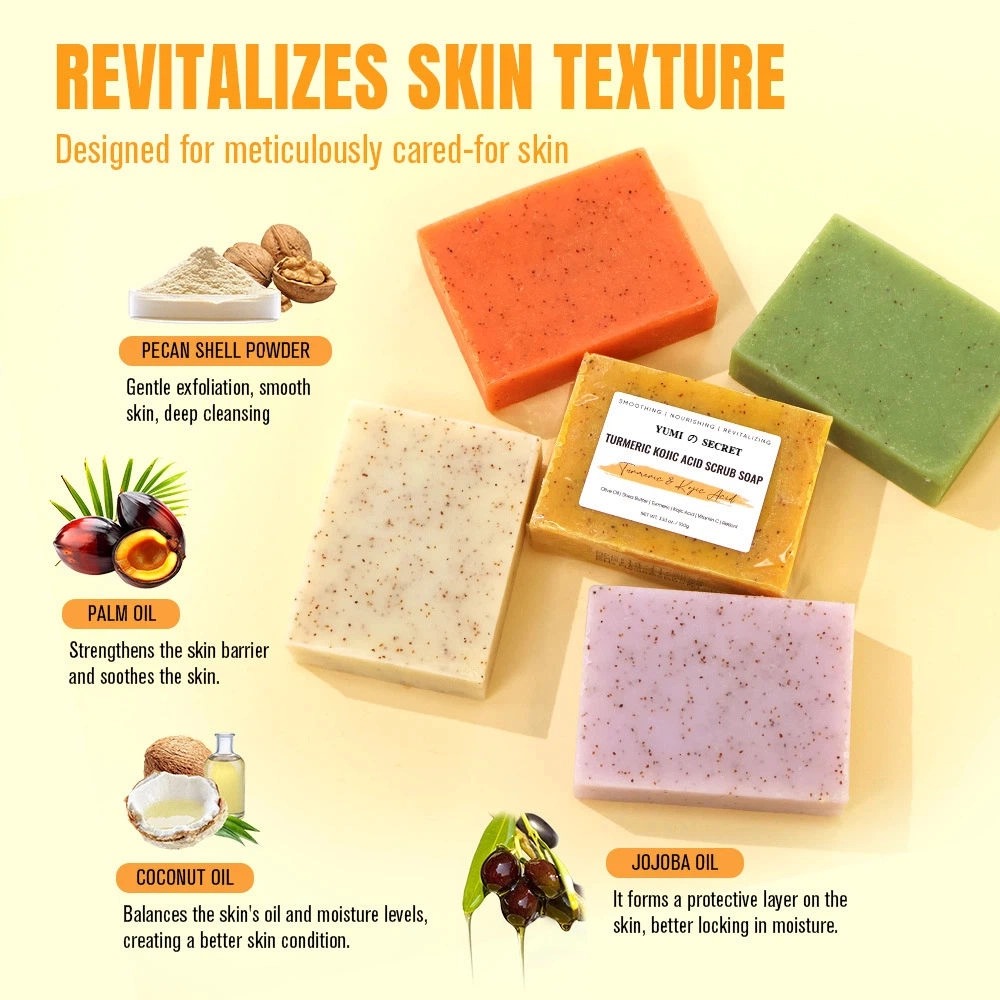 Questo sapone artigianale alle erbe e curcuma combina ingredienti naturali vegani con potenti proprietà illuminanti e anti-acne per ridurre efficacemente l'incarnato spento e detergere delicatamente la pelle quotidianamente, adatto a tutti i tipi di pelle. Certificato CPNP e HALAL, questo sapone solido alla curcuma è disponibile per servizi di private label OEM, con opzioni di packaging personalizzate per il vostro marchio.