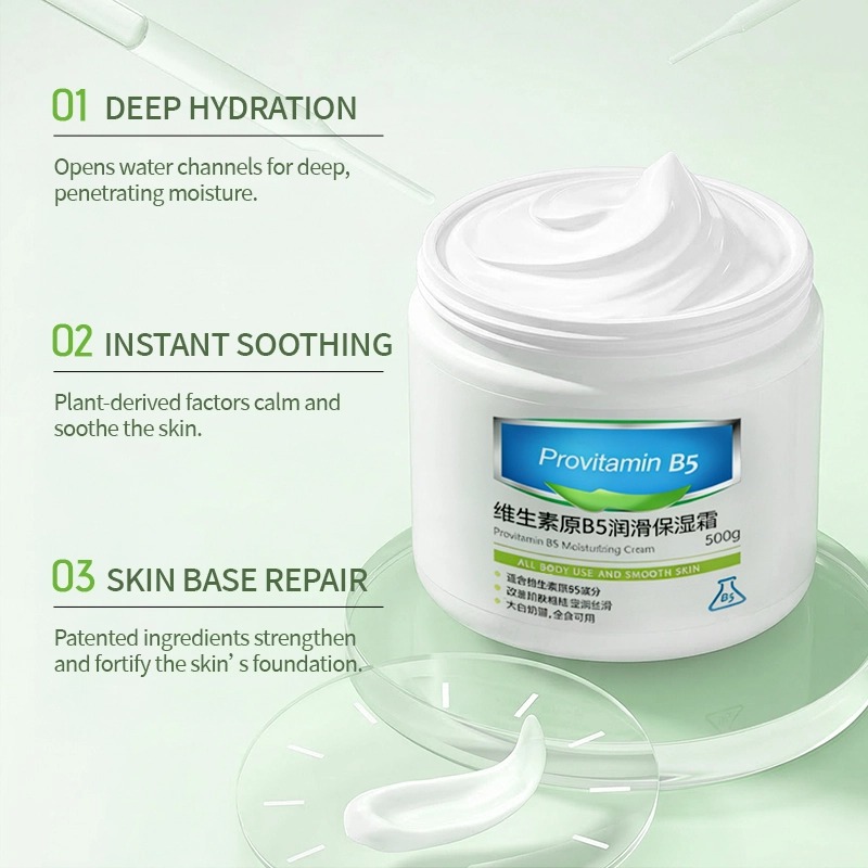 Crema alla provitamina B5: idratazione potenziata dell'81,51% per la pelle secca.