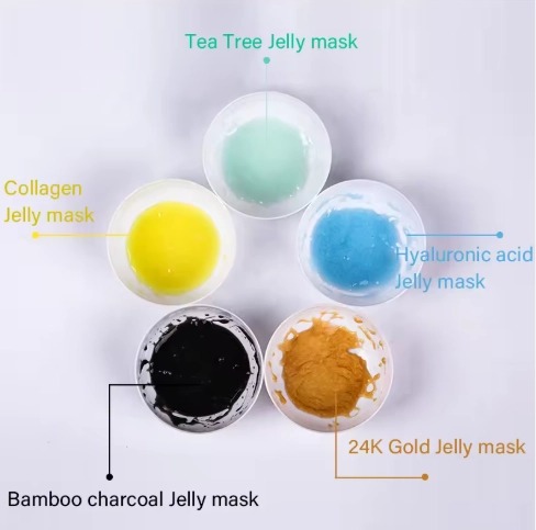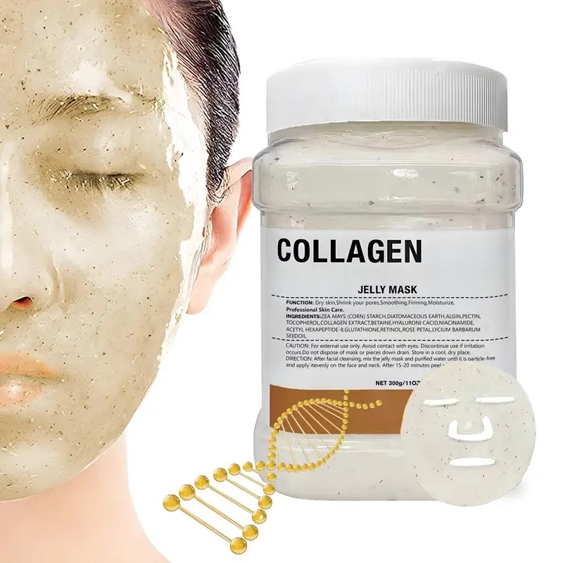 Polvere per maschera in gel fornita direttamente dal produttore, che, una volta miscelata con acqua, forma una maschera idrogel liscia e facile da rimuovere, adatta all'uso commerciale in saloni di bellezza/spa e alla cura della pelle fai-da-te a casa.